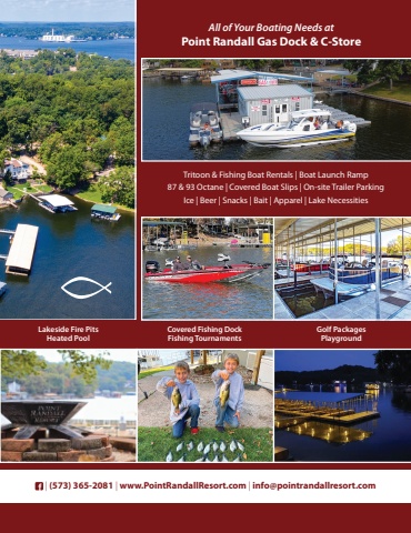 FunLake.com FunLake.com 1211584 Susan Road | Lake Ozark, MO | Horseshoe Bend Pkwy to Susan Rd. | 2 Mile Marker | (573) 365-2081 | www.PointRandallResort.com | info@pointrandallresort.comAll of Your Boating Needs atPoint Randall Gas Dock & C-Store Family Owned/OperatedSand Beach & Swim DockLakeside Fire PitsHeated PoolCovered Fishing DockFishing TournamentsGolf PackagesPlaygroundTritoon & Fishing Boat Rentals | Boat Launch Ramp87 & 93 Octane | Covered Boat Slips | On-site Trailer ParkingIce | Beer | Snacks | Bait | Apparel | Lake Necessities