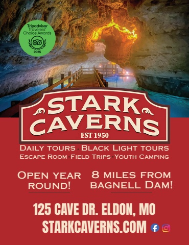 STARKCAVERNS.COM125 CAVE DR. ELDON, MODaily tours Black Light toursEscape Room Field Trips Youth CampingOpen yearround!8 miles frombagnell Dam!